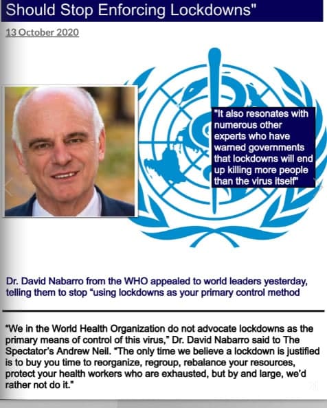 WHO Europe Director Dr. David Nabarro stated "Governments Should Stop Enforcing Lockdowns" 13th October, 2020